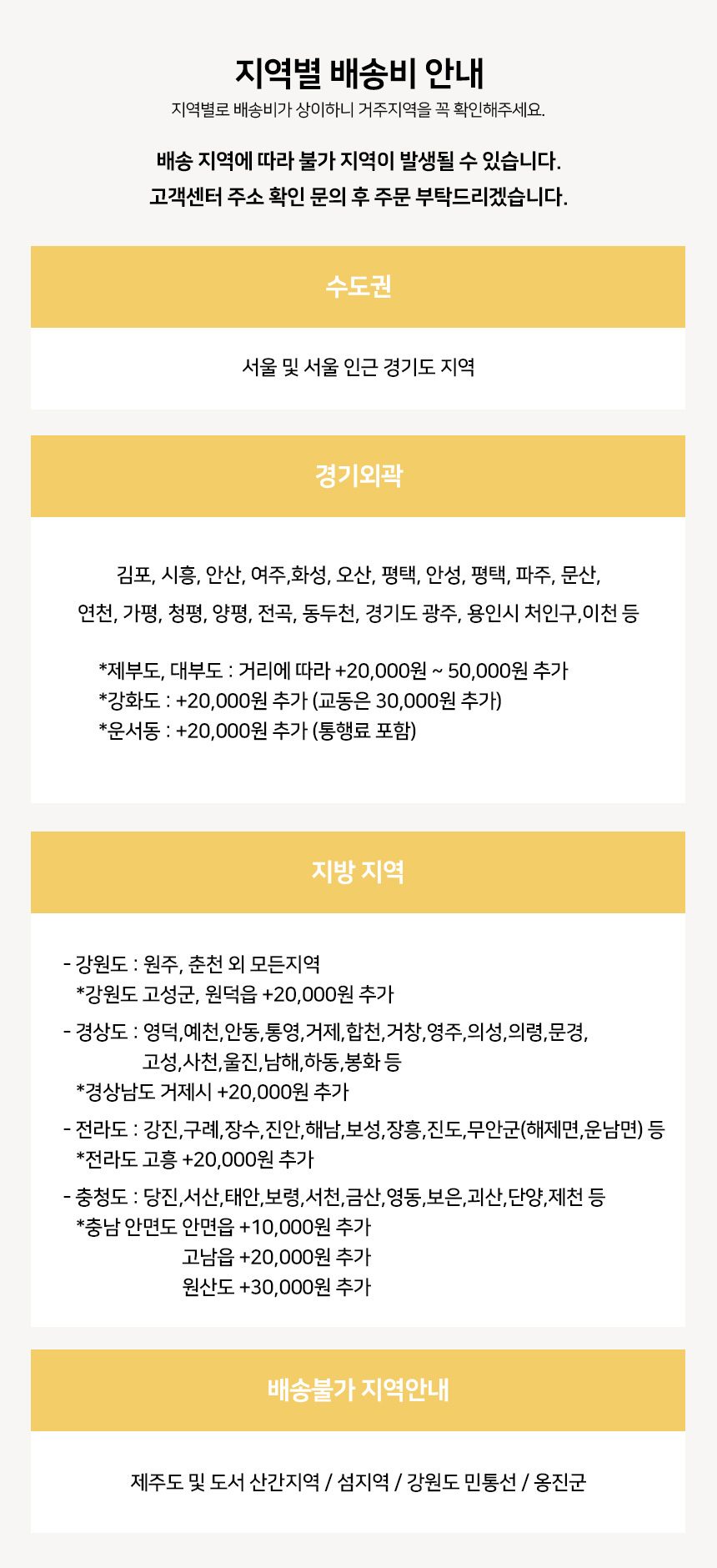 배송안내: 전국 배송이 가능하며, 토요일과 공휴일을 제외하고 평균 2~4일 소요됩니다.