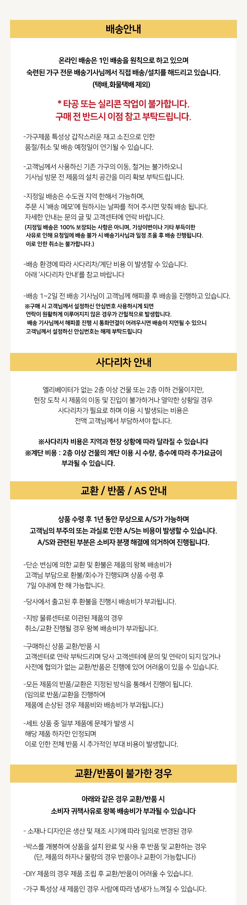 교환/반품 안내: 고객변심 및 주문착오에 의한 교환/반품은 제품 수령일로부터 7일 이내 가능합니다.