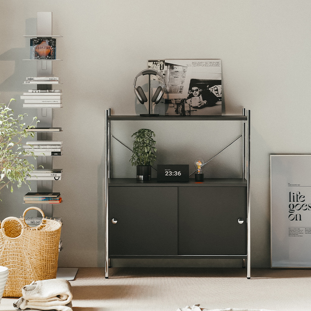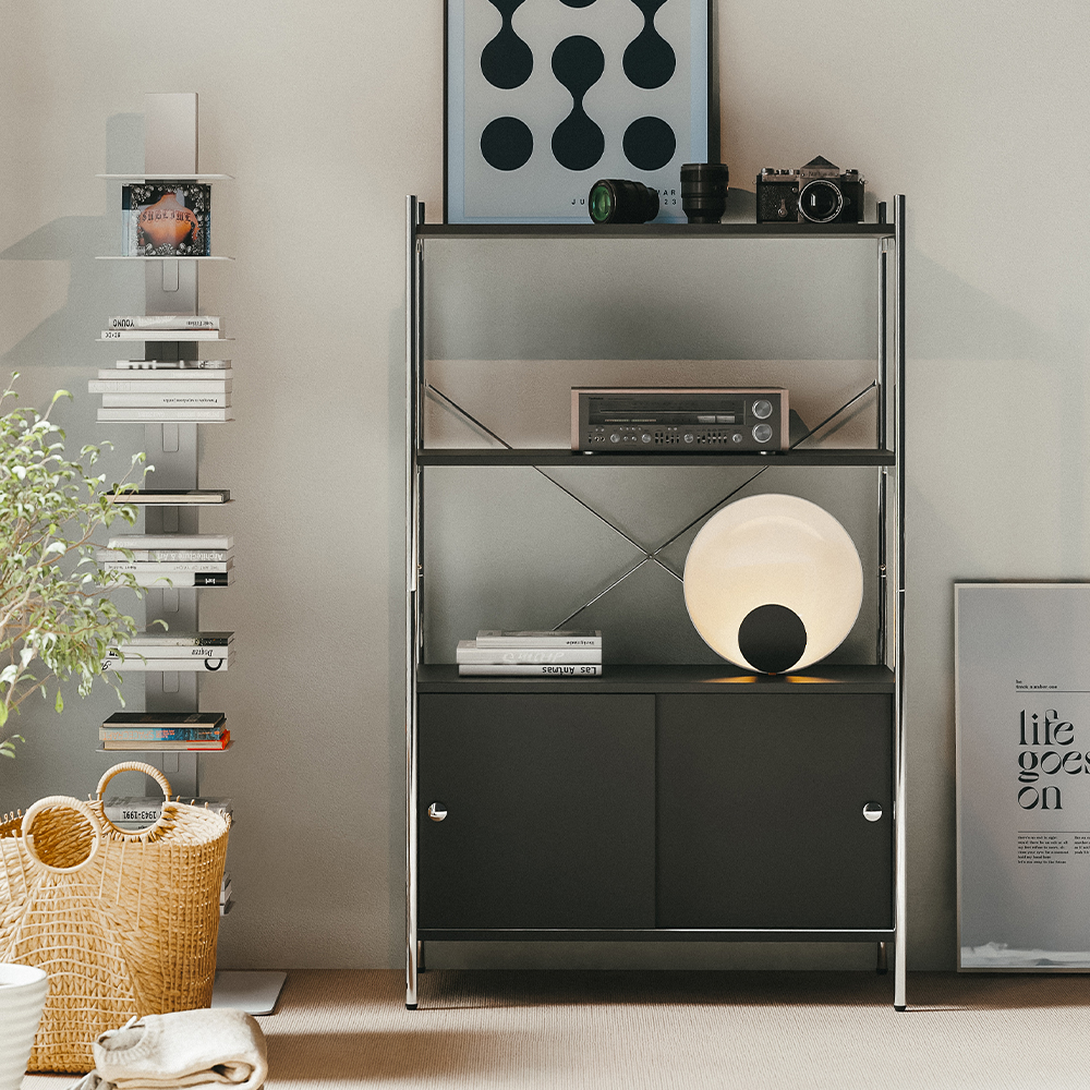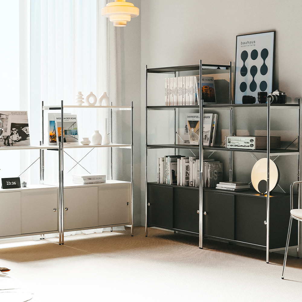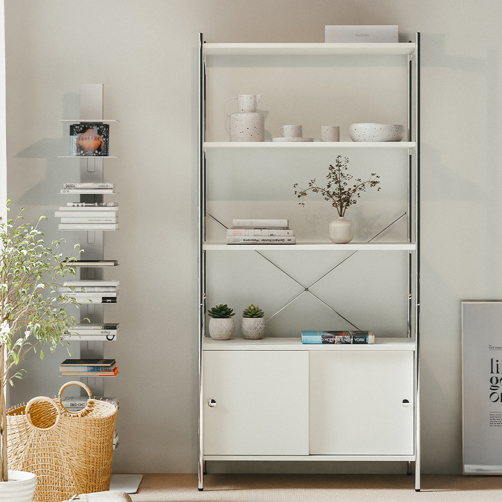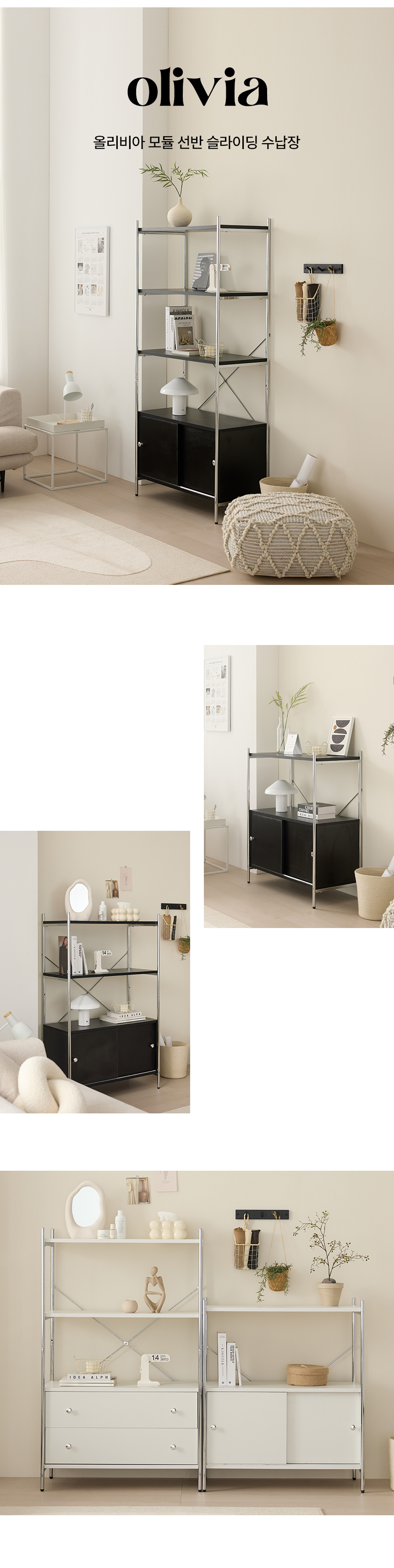 올리비아 철제 모듈 선반 진열장 슬라이딩 수납장 800
