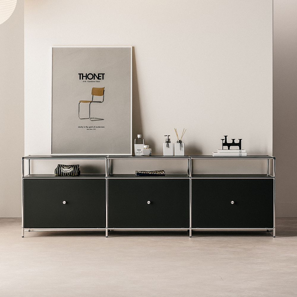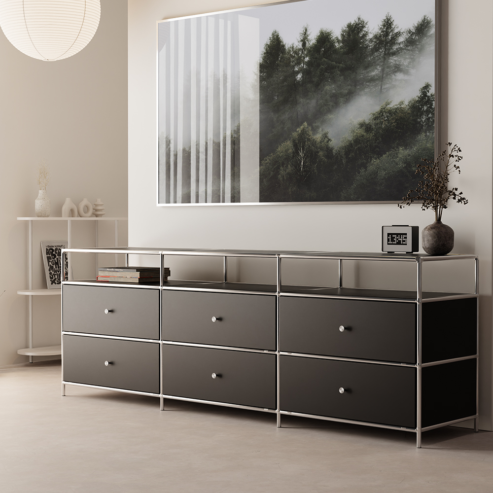 올리비아 미드센츄리 철제 모듈 선반 서랍 수납 거실장 1800